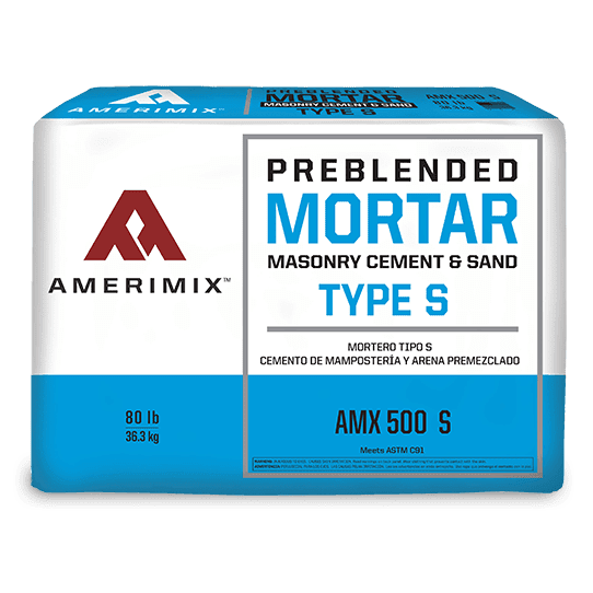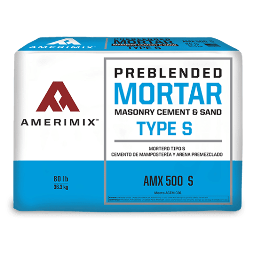 Mortar mix Amerimix AMX 500 series is a factory blend of masonry cement and dried sand specially formulated to provide consistently excellent water retention, exceptional workability and superior bond in every bag.